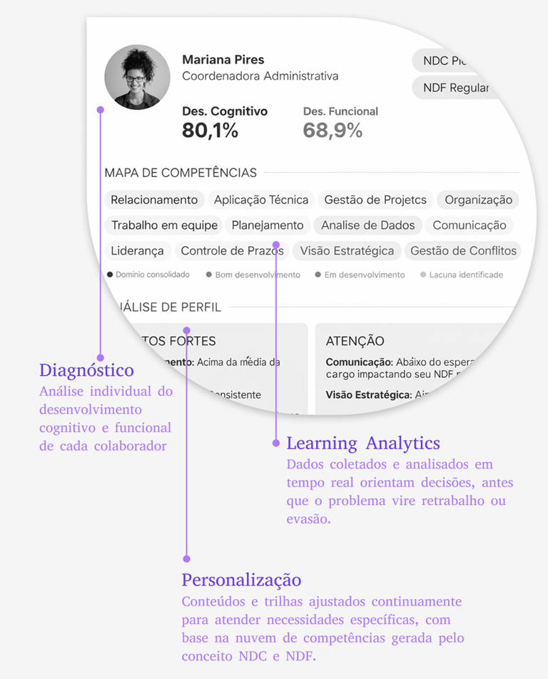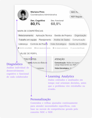 ✦ Você sabe quais colaboradores estão travados, e em quais competências específicas?