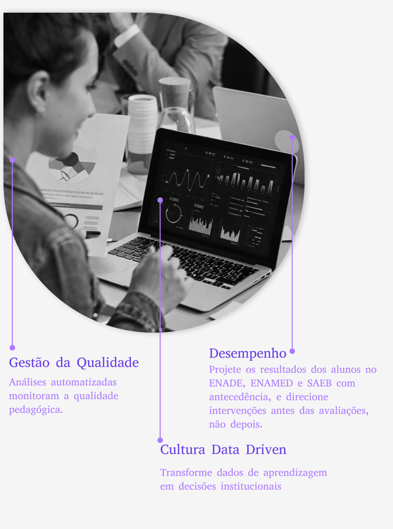 Os exames nacionais medem o que sua instituição realmente entregou em termos de aprendizagem. O problema é que a maioria das plataformas só mostra acesso e conclusão. Quando o resultado chega, já é tarde para intervir.